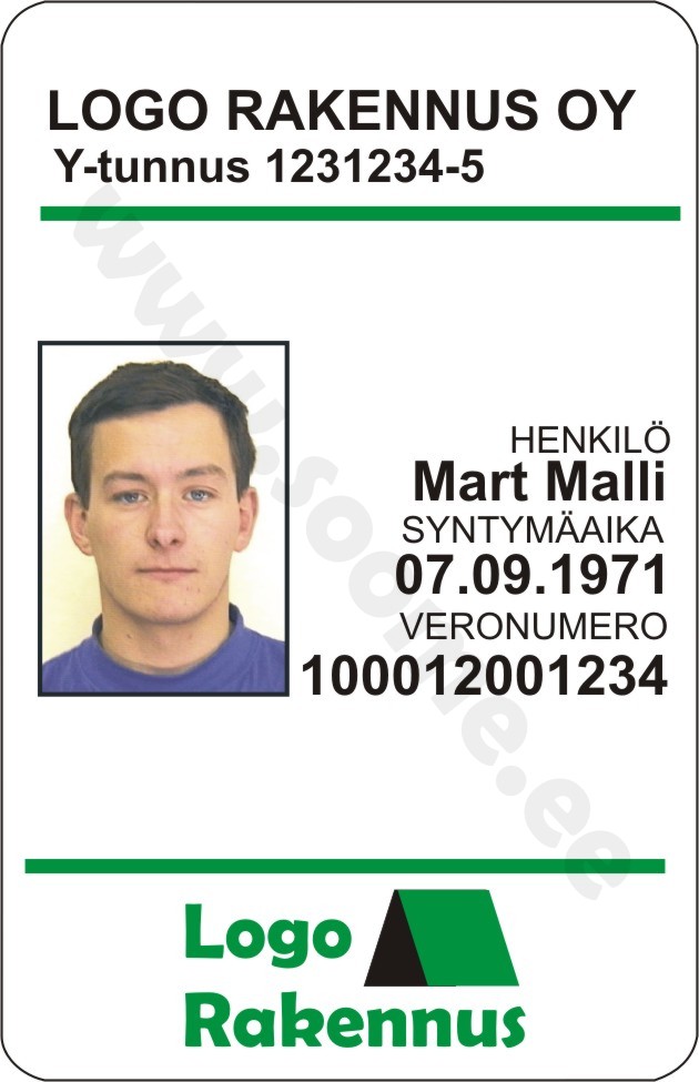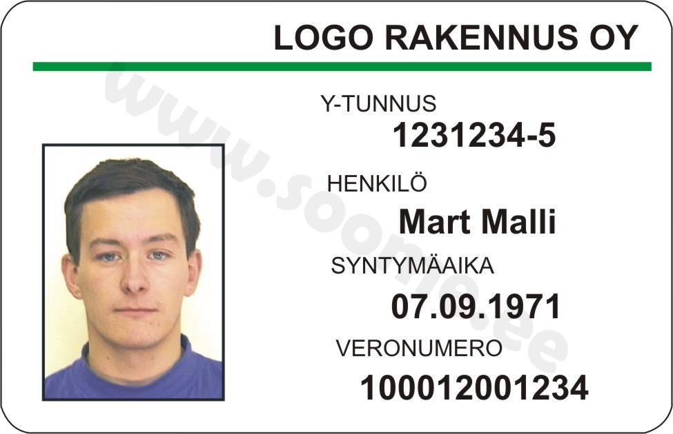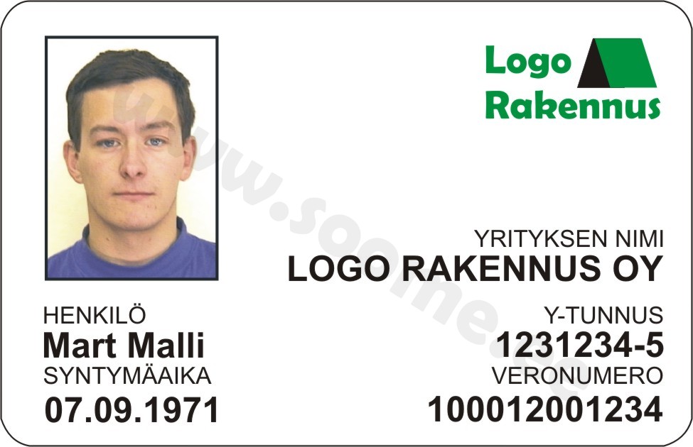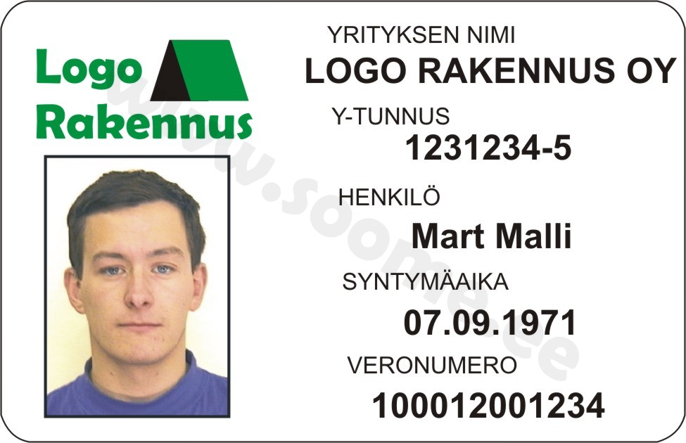 Iga tööandja Soomes on kohustatud hankima oma töötajatele fotoga isikukaardi (Rakennusalan henkilökortti), millel peavad olema märgitud: